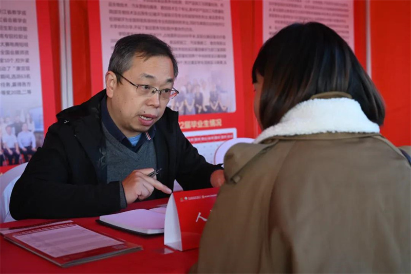 据统计,当天共有3000余名学生参加了现场招聘会,投递简历累计达2000余份,其中有600余名毕业生与用人单位达成了初步就业意向。